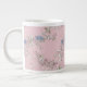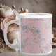 a delicate bouquet of wildflowers on a pink backgr large coffee mug