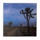 This photo features a starry sky and partial cloud cover above a desert road and joshua trees.