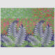 • Top and Bottom Sections: These sections feature a textured, leaf-like pattern in shades of green and purple on a black background.