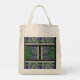 a design of a green and yellow pattern tote bag