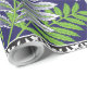 • Top and Bottom Sections: These sections feature a textured, leaf-like pattern in shades of green and purple on a black background.