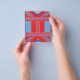 The design features a beautiful, symmetrical fractal-like design. It has intricate, lace-like patterns with a colour scheme of red, blue, and white. The symmetry and complexity of the design make it visually striking and interesting, often associated with mathematical beauty and artistic expression.
