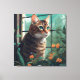 This digital art portrait captures the fun and adventurous personality of a tabby cat. The artwork shows a tabby cat with bright green eyes, sitting on a windowsill and surrounded by plants and flowers.