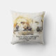 This throw pillow has two adorable dogs that appear to be saying a bedtime prayer at the side of a bed thanking the Lord for a loving family.