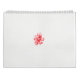 The design features a graphic representation of a flower with numerous petals. The petals are depicted with red scribble-like strokes, giving the impression of a sketch or an abstract painting. In the centre, there is a circular pattern in shades of pink and purple that suggests the flower’s core. The background is plain white, which contrasts with the vivid red of the petals.