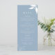 Imagine: Delicate white branch leaves dance across a dusty blue canvas, framing your personalised menu details in a modern and minimalist style. Customise it with your chosen appetizers, entrees, desserts, and beverages, making your guests' mouths water in anticipation. Add the bride and groom's names for a unique and personalised touch. This versatile menu seamlessly blends with the "A Delicate Dusty Blue Wedding Collection," ensuring a cohesive and elegant dining experience.