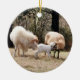 Our Appalachian ornament features Crinkles the Bold, our blackbelly ewe and Ramses our St. Croix ram with their newborn lamb Amenhotep, and on the reverse side, our rabbit who set off to see the world.