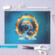 A fascinating interplay of fire and water. A dolphin jumps elegantly in the middle of this impressive contrast of fire and water. His silvery skin shines in the light of the flames and water.