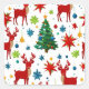 A festive Christmas pattern. It features red reindeer, green Christmas trees, blue snowflakes, and red stars on a white background. The pattern repeats seamlessly, creating a cheerful and festive design. It would be perfect for wrapping paper, greeting cards, or other holiday decorations.