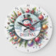 A Festive Snowman in a Wreath Large Clock