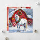 A pretty Christmas card with an illustration of a white horse standing in front of a gorgeous red barn decorated in Christmas lights and a festive wreath on a snowy winter day. On the back you can add your names and a custom holiday greeting in the personalise area.