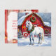 A Festive White Horse and Winter Barn Christmas Holiday Card