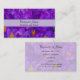 A lovely nature photograph of a field of bright blooming crocuses, vibrant purple petals with bright yellow orange centres.. A professional business card with a gardening / floral / outdoors / photography theme.