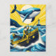 A whimsical illustration depicting a fisherman in a small boat rowing through the waves, with a whale soaring overhead and a lighthouse in the distance. The scene is filled with vibrant colours and playful details, creating a sense of wonder and adventure.