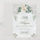 This invitation card has a soft, elegant style with a pastel colour palette dominated by shades of green and white.