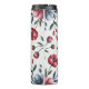 This delicate floral illustration features a border of stylised flowers in shades of red and blue, with some loose petals. The large blooms and green leaves create a beautiful frame around a blank centre. The art has a soft, romantic, and charming feel with a gentle watercolor style and a clean, white background.
