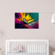 This powerful abstract floral artwork captures a moment of pure energy and motion, as radiant petals burst outward in a dramatic play of color and texture. Vivid yellow and warm orange dominate the bloom, illuminated against deep teal, rich magenta, and shadowy dark tones. The flower feels alive—almost in mid-flight—its form shaped by sweeping, confident brushstrokes that convey movement, strength, and emotion.