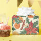 This image depicts a beautiful pattern featuring poinsettias and oranges, set against a backdrop of vibrant colours. In the centre of the image, there is a detailed painting of an orange with leaves, showcasing a range of hues including pink, red, and orange. The fruits and foliage are surrounded by intricate designs that include elements like berries, holly, and cinnamon. The overall composition evokes a festive and cosy atmosphere, perfect for the holiday season. The colour palette consists of earthy tones like browns, greens, and oranges, with accents of red and pink adding a pop of colour. The artwork is rich in detail and texture, creating a visually captivating scene.
