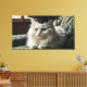 A fluffy white cat wearing a graduation cap canvas print