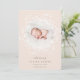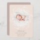 Elegant birth announcement in soft colours features a round newborn photo encircled by a wreath of white botanical branches and leaves, with "introducing [Name]" at the bottom in chic grey lettering. Personalise with baby's birthdate, and birth stats beneath, and add a personal message to the back, along with an additional photo.