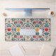 LOVE this desk mat! It's large! It fits across my desk. No need for a small mouse pad now! Color and print are excellent. Quality seems to be excellent too. Delivery was about 3 days sooner than expected. I think this is one of my favorite Zazzle products! Excellent. The color is vibrant and true to what I expected.
