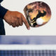 A Friesian Stallion horse rearing Ping Pong Paddle