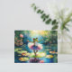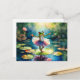 A frog ballerina dancing on a lotus leaf in a pond holiday postcard