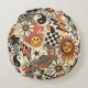 A fun retro 90s pattern featuring cheerful happy f round cushion