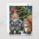 A happy gnome in a santa hat and an extra large squirrel in front of a Christmas tree AI generated art