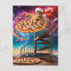 A Funny Surreal Santa Hat Christmas Pizza Cat Postcard