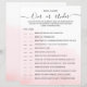 A GAME sheet of paper for a bridal shower in a soft, elegant, minimalist style.