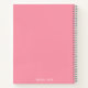 A pink notebook with a simple floral design of geometric red and indigo flowers. Plus purple and cyan elements.
