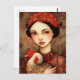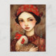 A girl holds her pet chicken AI generated art with the funny little errors of an AI generated work of art
