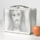 This is a standard metal lunchbox that appears to work just fine. We designed this box ourselves with an uploaded photo and custom text on the front and back. It looks absolutely beautiful except the front of the lunchbox is not centered like it shows in the photo. The print borders don't align with the inset flat part of the box where the preview photo online showed it perfectly centered in there. The back looks nice and centered though.