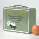 This is a standard metal lunchbox that appears to work just fine. We designed this box ourselves with an uploaded photo and custom text on the front and back. It looks absolutely beautiful except the front of the lunchbox is not centered like it shows in the photo. The print borders don't align with the inset flat part of the box where the preview photo online showed it perfectly centered in there. The back looks nice and centered though.