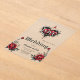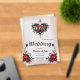 A gothic romance. An ornate, gothic-style frame surrounding a beige background. Red roses with dark green leaves are arranged around the frame, particularly in the corners. At the bottom centre, there is a decorative heart-shaped emblem with the word "LOVE" inscribed in a stylised font.