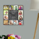 Create your own unique photo clock for grandparents with 12 of your favourite photos. The grandkids quote is printed in elegant handwritten script typography and reads "a grandchild's laugh is sunshine in the house". This design has a rustic country wood background in shades of grey and black. The simple grid style photo collage displays your pictures in square / instagram format. The photo template is set up for you to add your photos working clockwise from top left. A lovely photo gift for grandparents.