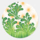 A green and gold artistic pattern depicting a tree classic round sticker