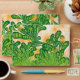 A green and gold artistic pattern depicting a tree envelope