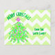 Green Christmas Tree Colourful Holiday Personalised Postcard. Warm up your holiday wishes with this charming chevron pattern. Whimsical abstract Christmas Tree design done in my slices of colour style. I love how the chunks of colour move around the design.