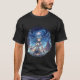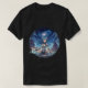 Uma ilustração em estilo anime de alta fidelidade, apresentando uma jovem guerreira mística em um cenário de fantasia épica. Com cabelos azuis vibrantes e uma armadura detalhada em tons de prata e ouro, ela empunha um cajado mágico que emana uma luz etérea. O design é emoldurado por um círculo místico repleto de runas antigas, destacando um céu noturno profundo com uma galáxia espiral e templos orientais ao fundo. A arte combina a estética clássica de "Magical Girls" com elementos de RPG, resultando em uma composição equilibrada e visualmente impactante para vestuário.