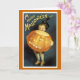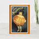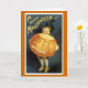 Vintage Halloween greeting card illustration with child holding Jack-O-Lantern