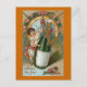 Vintage Happy New Year card showing a little girl with a magnum of champagne and decorated with roses.