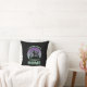 The black background creates a classic and sleek look while the sea green font in a Halloween font adds a pop of colour. The circular picture on the front of the pillow features a creepy haunted house with barren trees, birds, and bats in the sky against a purple background, making it a perfect choice for anyone who loves spooky and modern Halloween style.