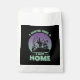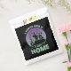 Introducing our "A Haunted House is a Happy Home" favour bags, the perfect addition to your spooky Halloween party! These favour bags feature a black background with the words "A Haunted House is a Happy Home" in sea green Halloween font. The circular picture on the bag is of a creepy haunted house, barren trees, and birds and bats flying in the sky, all set against a purple background. The modern and spooky design will delight your guests and add a touch of fright to your party favours. These bags are perfect for candy, small toys, or any other small items you want to send home with your guests. Get ready to spook your guests with these eerie and fun favour bags!