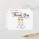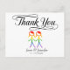 This thank you card features a beautiful and heartfelt design to show your appreciation for your wedding guests. The graphic depicts two women, in the form of elegant stick figures, holding hands. The figures are coloured in a beautiful rainbow, symbolising love and diversity. This card is a wonderful way to express gratitude to everyone who helped you celebrate your special day.