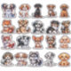 Illustration depicting twenty different types of cute puppies. Generated by Dalle3.