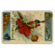 Shpooky magnet with vintage Halloween image of witch, black cat, and owl.