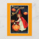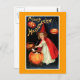 Classic vintage Halloween card showing a little girl dressed in a red hat and cloak surrounded by four pumpkins and wishing us " A Jolly Halloween".