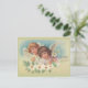 Victorian image of two little angels on a cloud surrounded by Easter Lillies.
